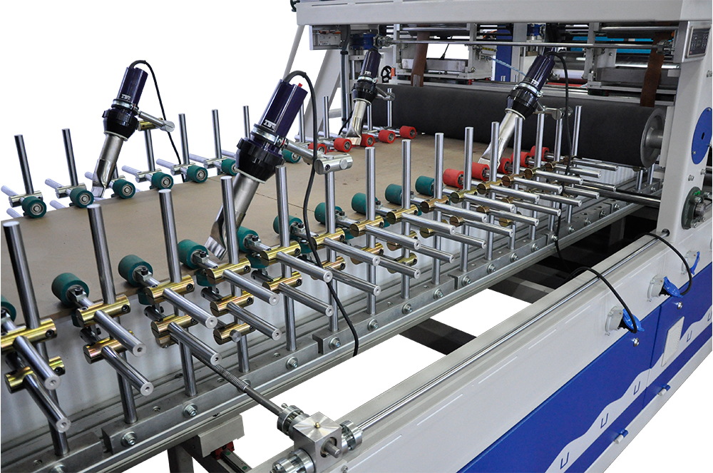 Poliüretan Hotmelt (PUR) tutkal kullanarak maksimum 130 cm folyo genişliğine kadar ahşap ve MDF panel, sunta, lambiri, boy kapakların; PVC, high gloss, finish folyo, CPL (mikro laminat) gibi rulo tip folyolar ile kaplanmasına olanak tanıyan palet sistemli geniş yüzey laminasyon makinesidir.