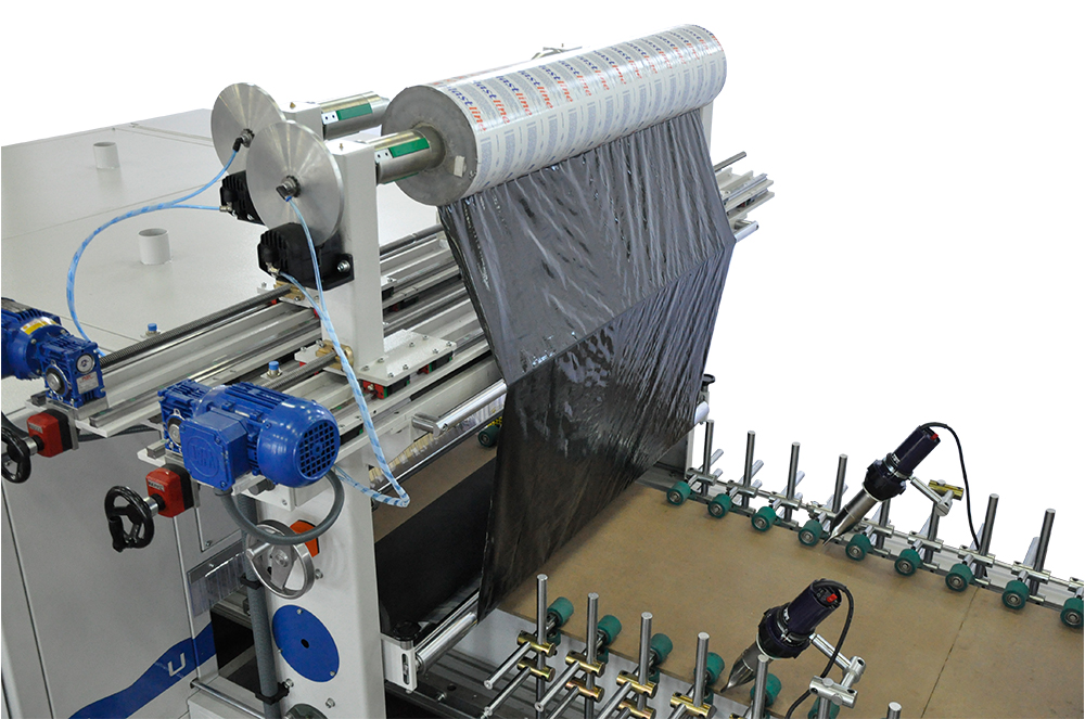 Wide surface lamination machine laminates foils in roll form such as PVC, high gloss, finish foil, CPL (micro laminate), up to maximum 130 cm foil width to MDF panels, chipboard, wall and furniture panels with using Polyurethane Hotmelt (PUR) Glue.