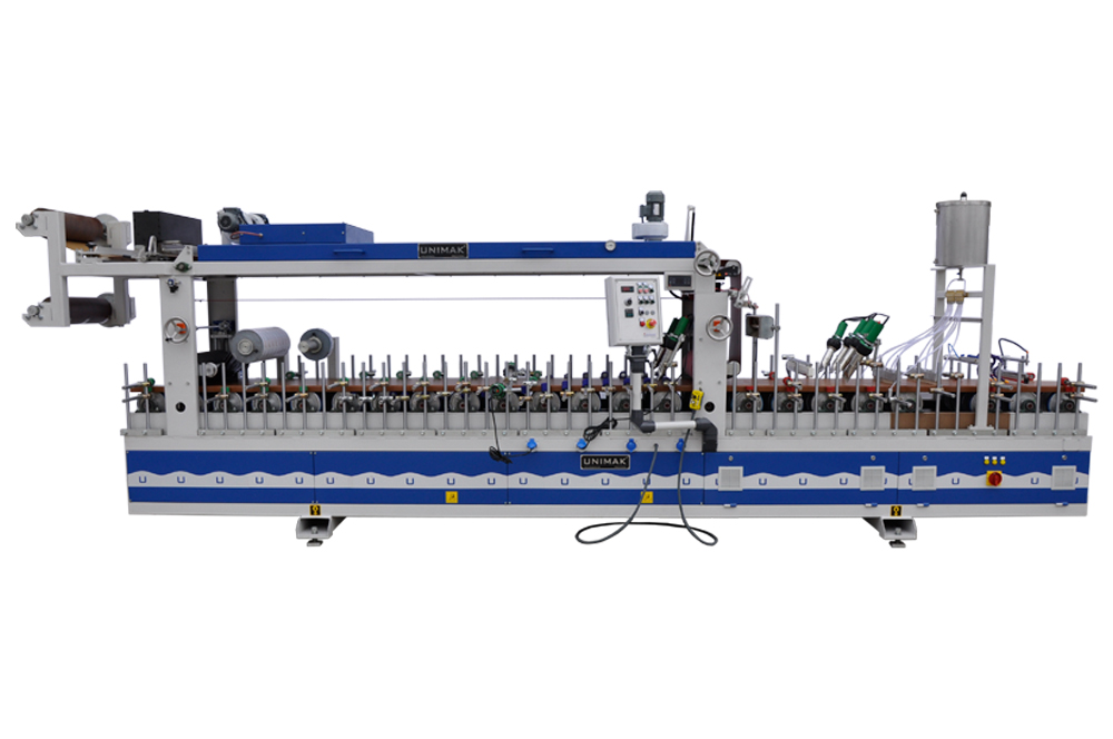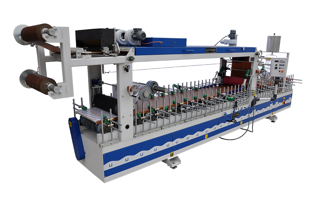 PVC WINDOWSILL AND PANEL WRAPPING MACHINE USING SOLVENT BASED DOUBLE COMPONENT (PU) GLUE