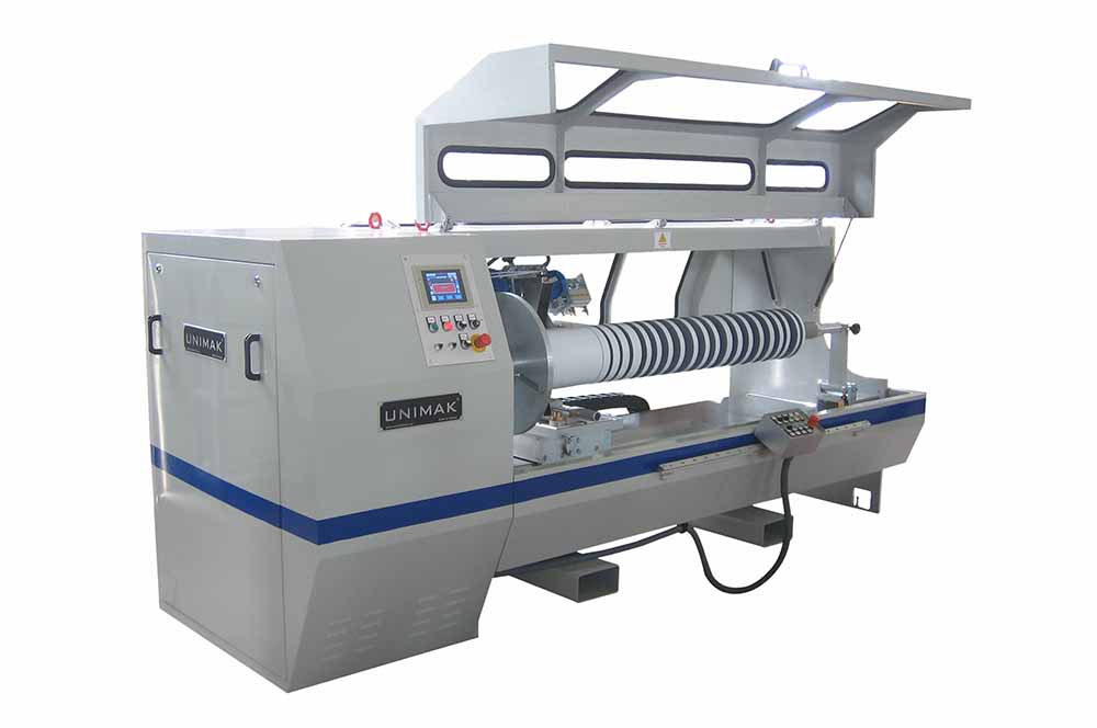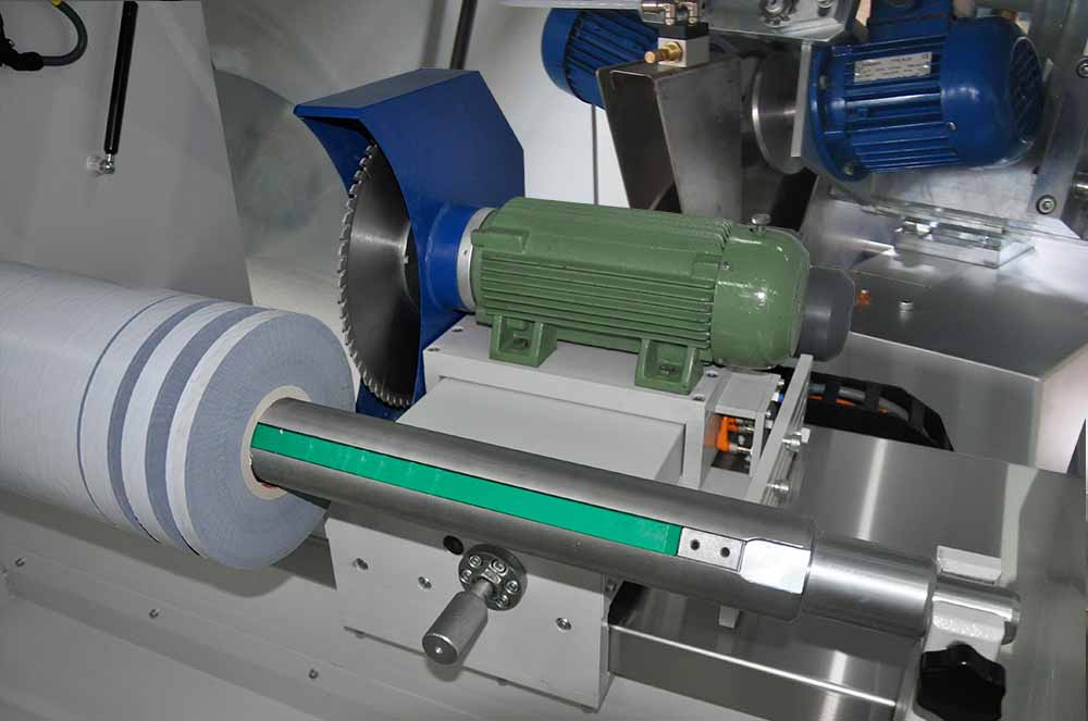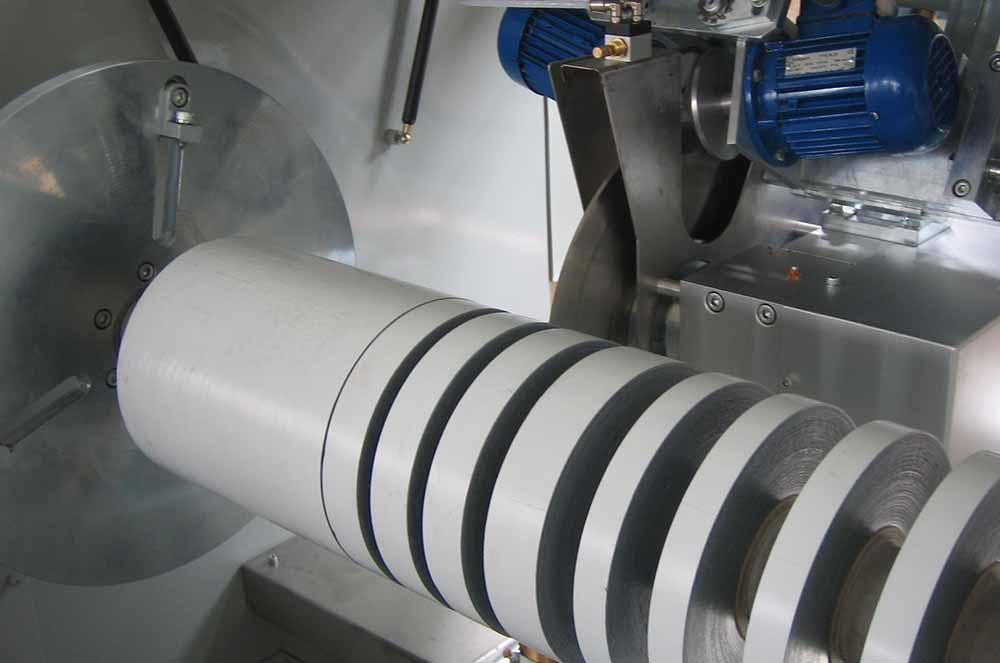 Machines which can slit protective tape in required width on 160 cm bobbin width, chipless, waste-free, with three axis servo controlling system.