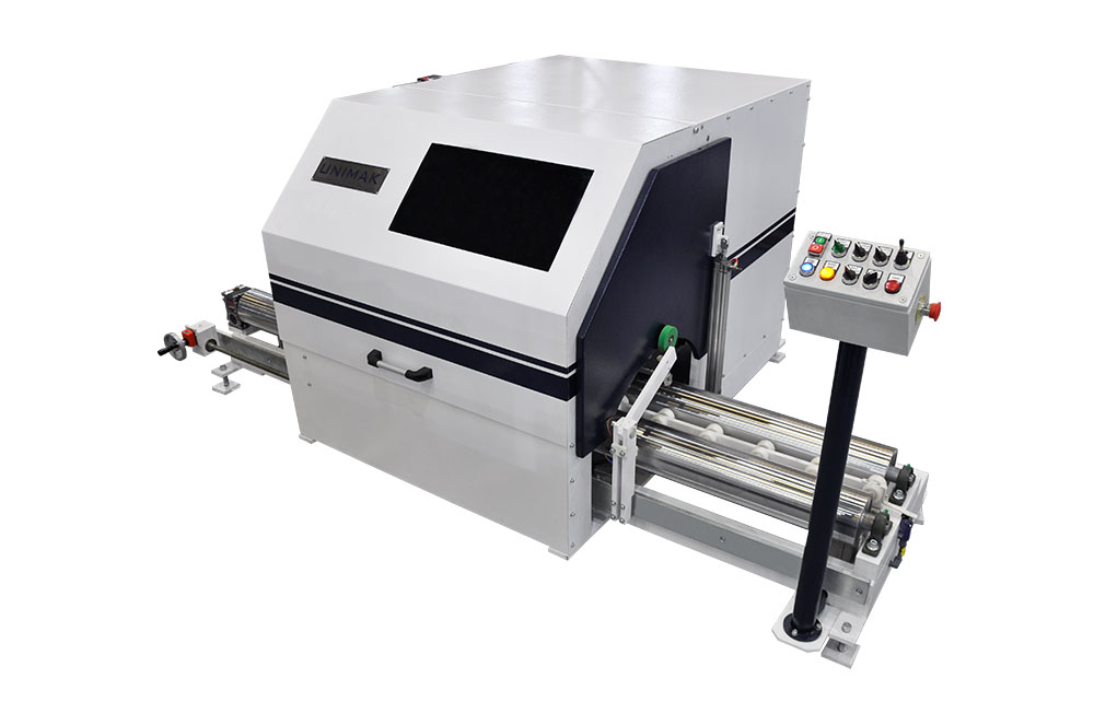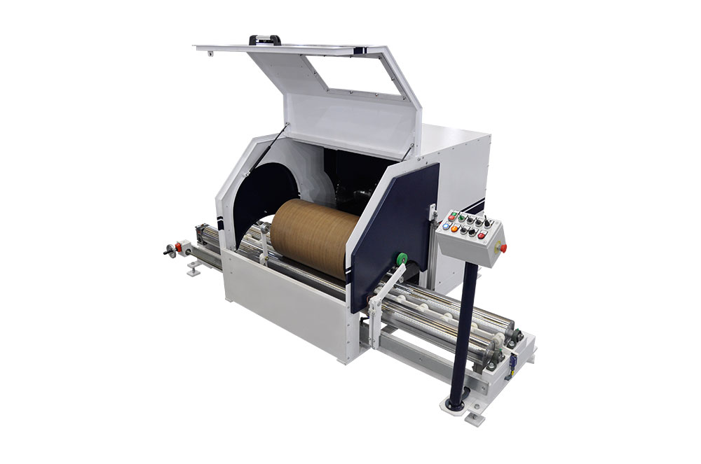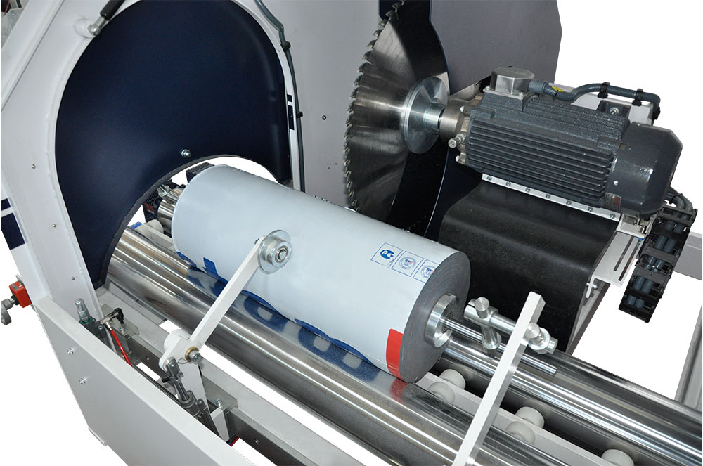 Machines designed for cutting foils such as paper, laminate which are suitable for saw slitting, without unwinding from roll.