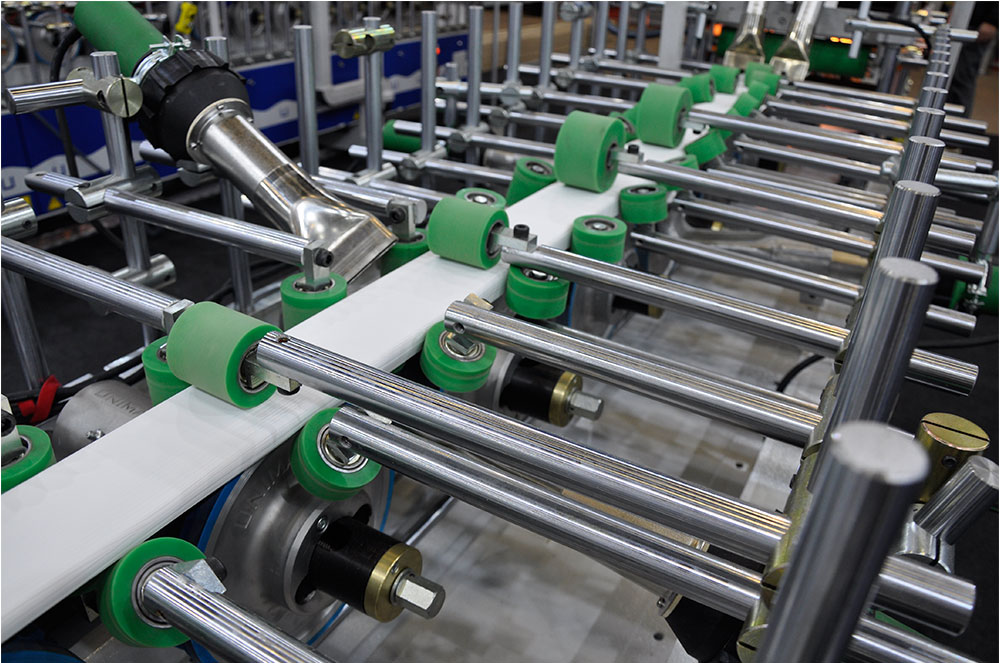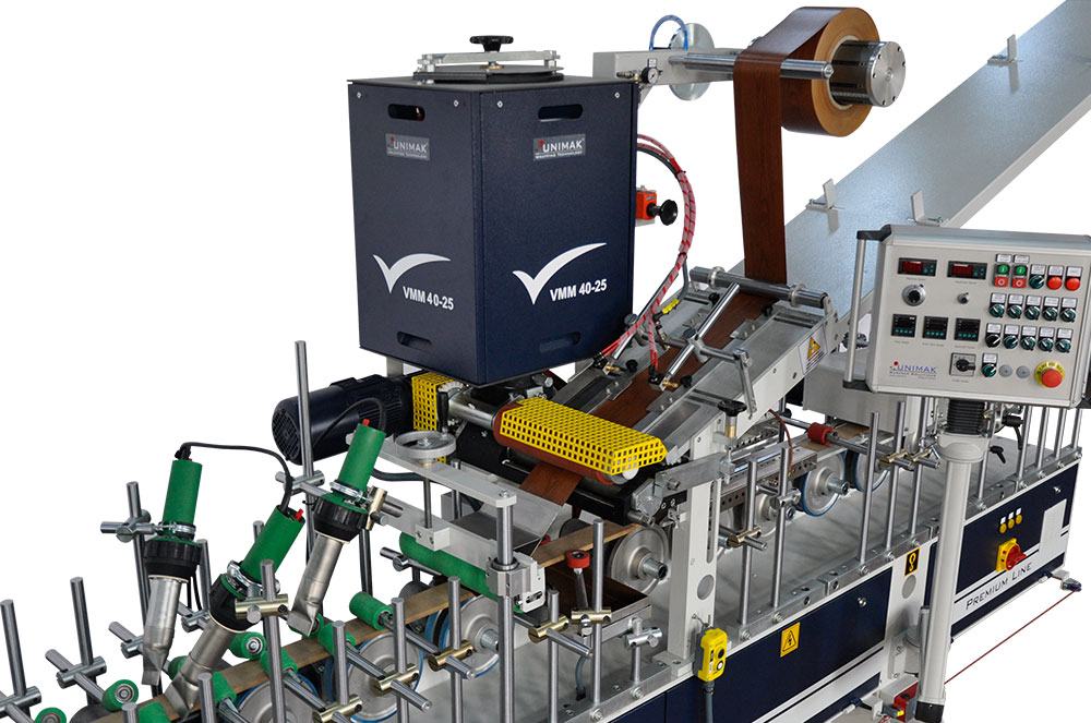 PROFILE WRAPPING MACHINE WITH POLYURETHANE (PUR), EVA / PO HOTMELT MELTING SYSTEM (VMM)